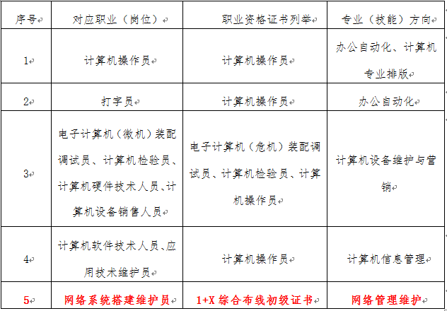 说明:可根据区域实际情况和专业(技能)方向取得1或2个证书。