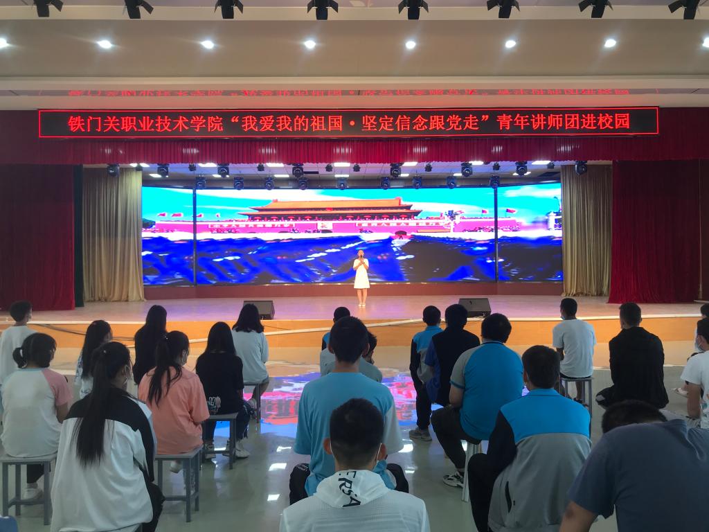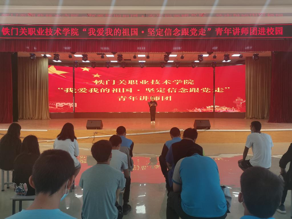 为庆祝中国共产党成立100周年,深入贯彻落实中央党史学习教育动员大会精神,引导学生从党的百年伟大奋斗历程中汲取继续前进的智慧和力量。6月23日,bat365在线中国官网登录入口青年讲师团成员在技能训练中心四楼多功能厅开展“我爱我的祖国 ·坚定信念跟党走”主题宣讲活动,各系部师生代表共300余人参加本次活动。