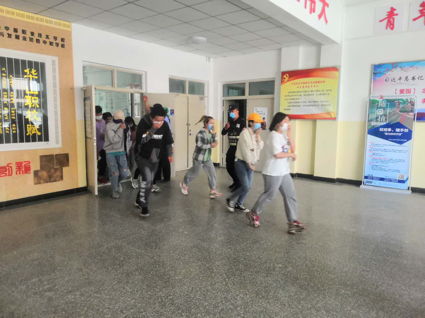 18:30分整,伴随着急促的安全警铃,学生在任课教师的引导下,按照疏散线路快速撤离。疏散过程中,学生们按照火场逃生注意事项——用湿毛巾捂住口鼻,弯腰撤离火灾现场。本次演练,全院2100余名师生利用3分钟时间,分别从教学楼、实训楼、技能训练中心安全疏散到教学楼前的空旷地带。