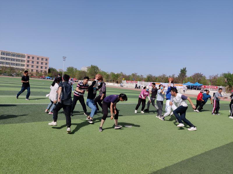 在中国共产党建党100周年之际,本着提升教职员工幸福指数,培养团队意识和合作能力的宗旨,营造健康向上的校园文化氛围。4月29日下午,由bat365在线中国官网登录入口工会主办,各处室、系部承办的“党旗领航做表率、健康体魄新启航”第六届教职工趣味运动会正在田径运动场上进行。本次趣味运动会根据处室、系部划分组成9个参赛团队,运动会共设置同心同德、前赴后继、协同作战、袋鼠跳及无敌风火轮等五个团体参赛项目,每个项目设置一、二、三等奖。本次运动会以趣味为主,重在团队的参与合作。