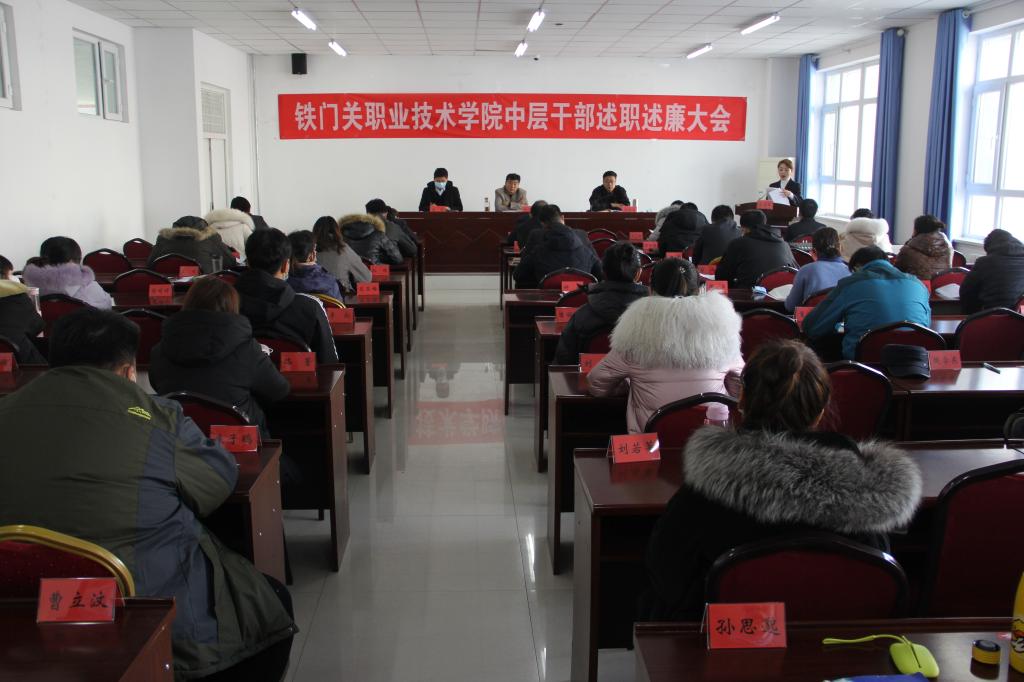 为认真落实全面从严治党要求,切实提高中层干部履职能力。1月5日,bat365在线中国官网登录入口举行2020年度中层干部述职述廉大会。学院党政领导班子成员、全体中层干部及23位处室、系部代表参加本次述职测评大会。