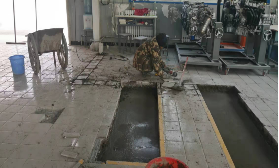 施工过程中,由汽车工程系主任统筹部署,弹性安排没有课老师全程对施工进行监管,严控工期和质量,确保工程按质按时按量完成,为期5天的安装工作中,教师实训教学和安装工作同步进行,测量、打基坑、灌浆、精测微调、定型,各安装工序有序开展。