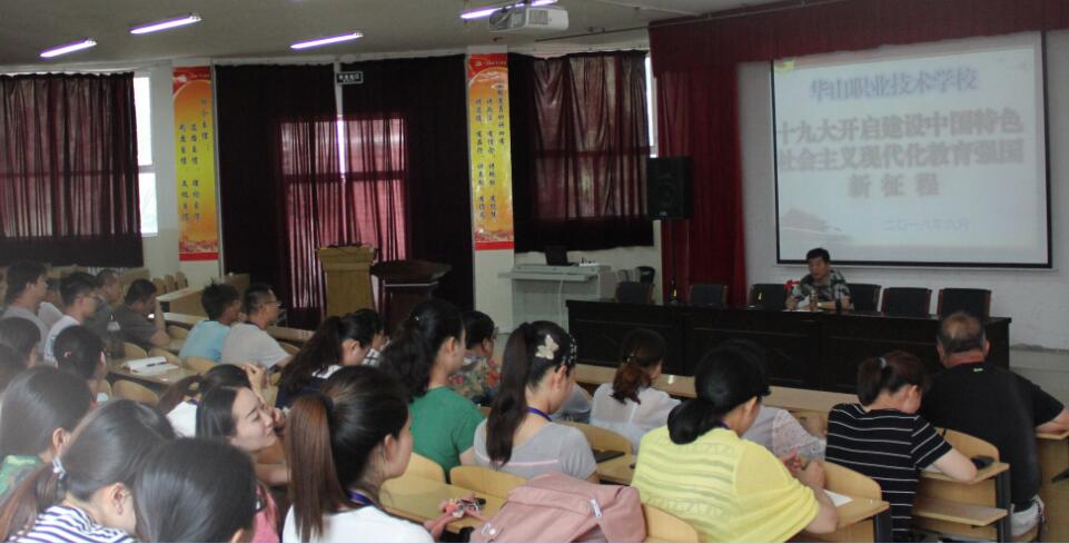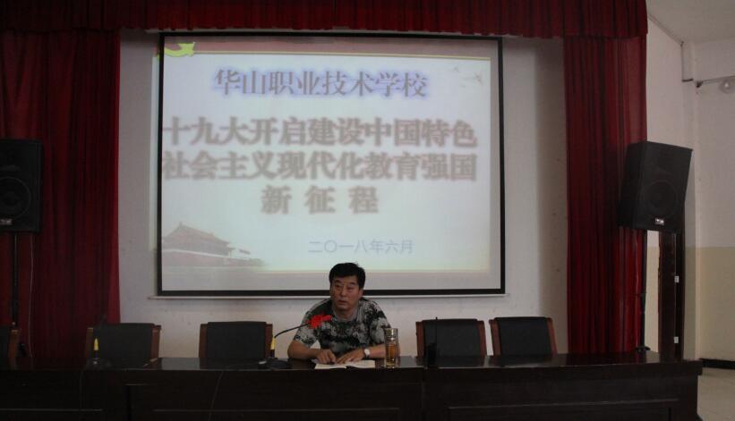 6月14日下午,第二师华山职业技术学校党委副书记、校长孙苏维在阶梯教室为全体教师作了题为:“十九大开启建设中国特色社会主义现代化教育强国新征程”的讲座。