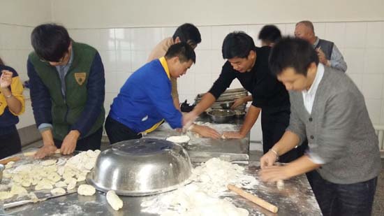 铁门关团新闻网12月22日电 (王永红) 12月21日下午,在华山职校的二楼餐厅,青年教师们你和面、我擀皮,忙得不亦乐乎,这是学校工会组织大家一同包饺子过冬至的一个场景。