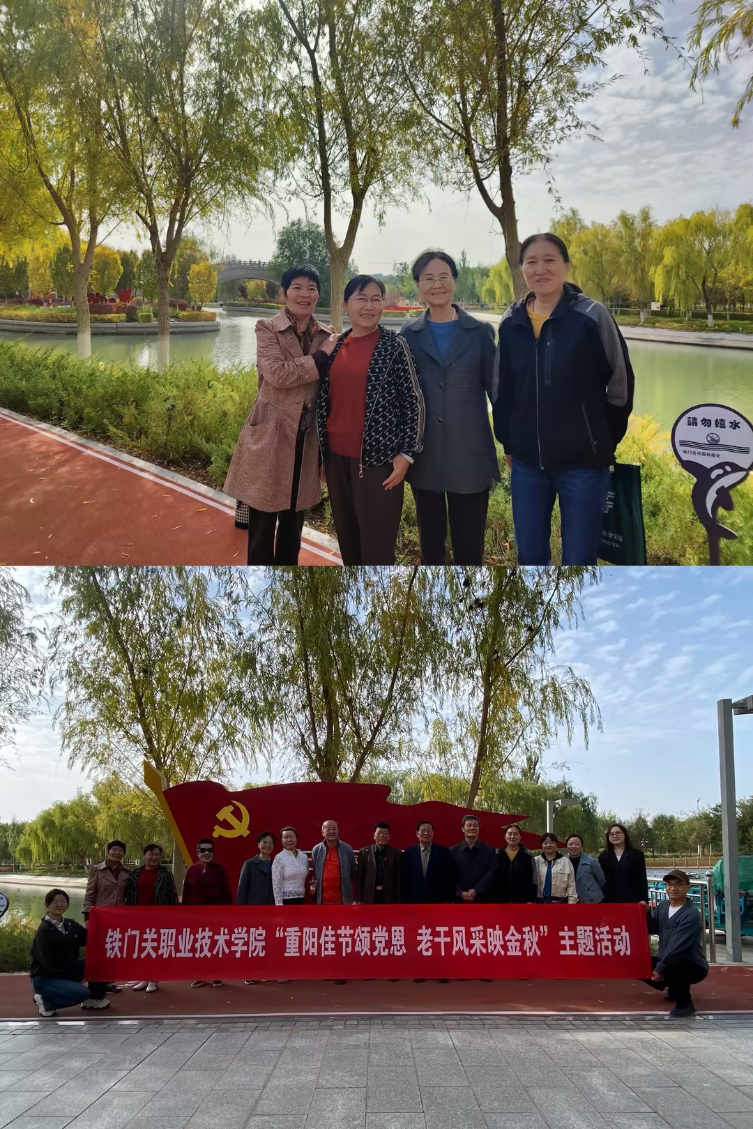 来到铁门关市将军河畔的雄关驿站,一路漫步至关楼,河边的景观带内绿树环绕、碧波荡漾,空气清新、秋色宜人。大家一边畅聊生活趣事,一边尽情领略这座军垦之城的美好风貌,时而驻足拍照留念,沿路洒下阵阵欢声笑语。