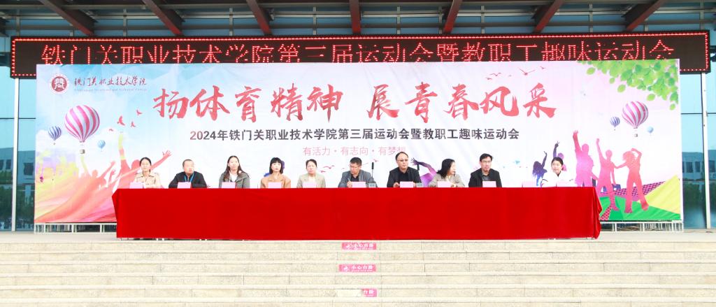 10月16日,bat365在线中国官网登录入口第三届运动会暨教职工趣味运动会开幕式在燕赵楼前广场举行,学院领导、各二级分院负责人出席开幕式。