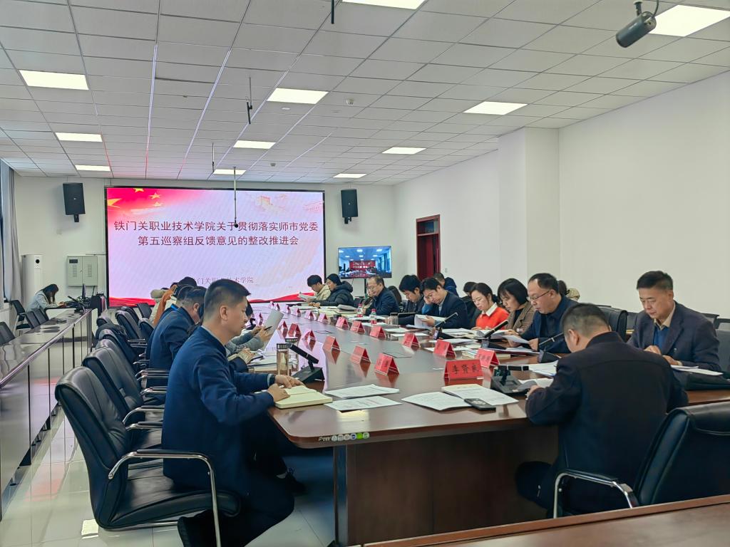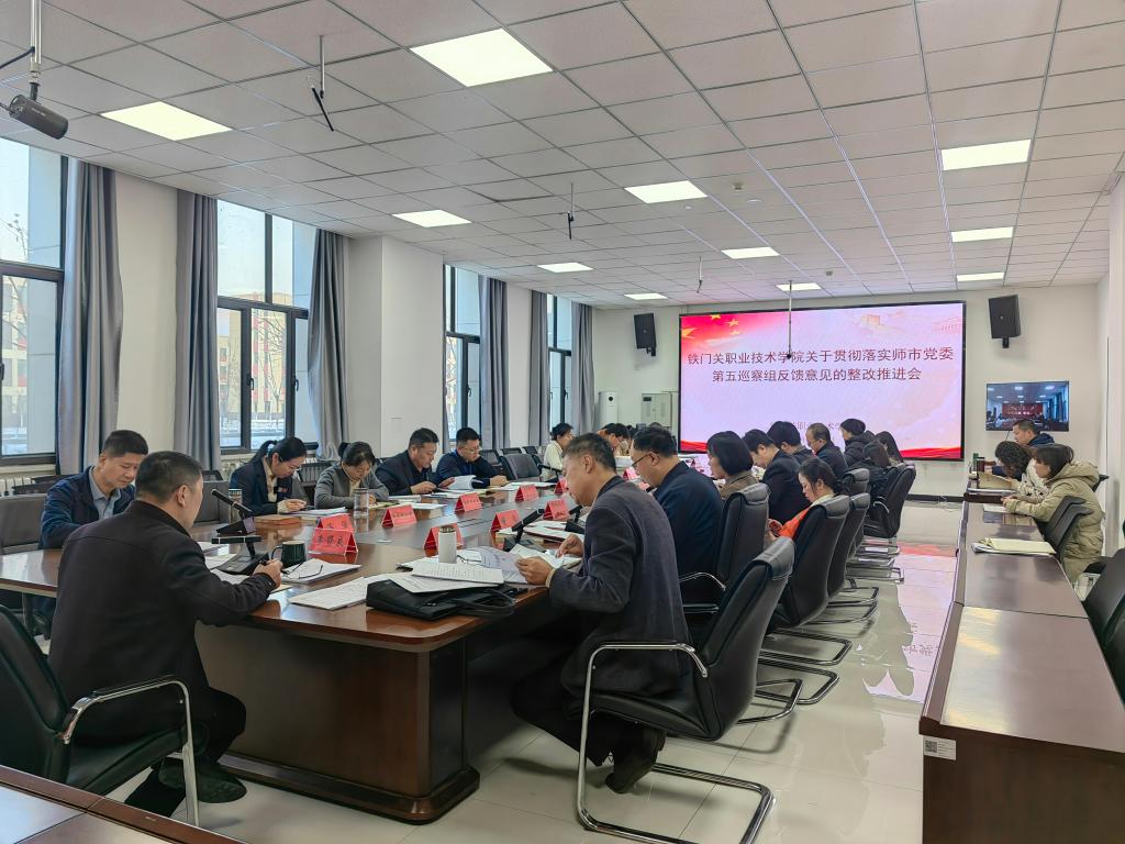 为切实贯彻落实师市党委第五轮巡察组巡察整改工作部署,推进巡察反馈问题彻底整改,12月11日下午,bat365在线中国官网登录入口召开师市党委第五轮巡察组反馈意见整改推进会。学院领导、整改工作组成员、相关部门主要负责人参加会议。