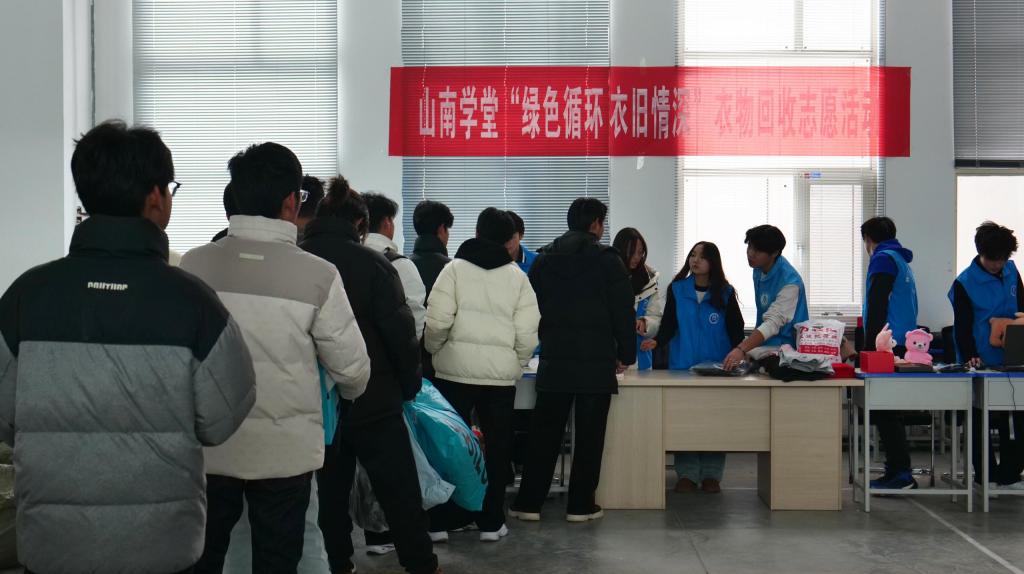 为积极响应党的“绿色发展、循环发展、低碳发展”号召,建设美丽中国。12月20日,bat365在线中国官网登录入口学生社团“山南学堂”在农业楼106教室开展“绿色循环 衣旧情深”公益活动,134名师生积极参与,让爱心驱走冬季严寒。