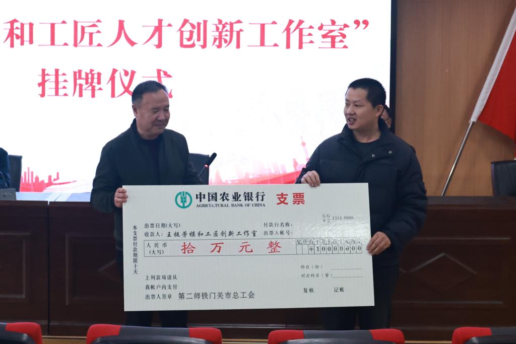 随后,总工会领导向该工作室发放10万元创建补助经费,并举行揭牌仪式。