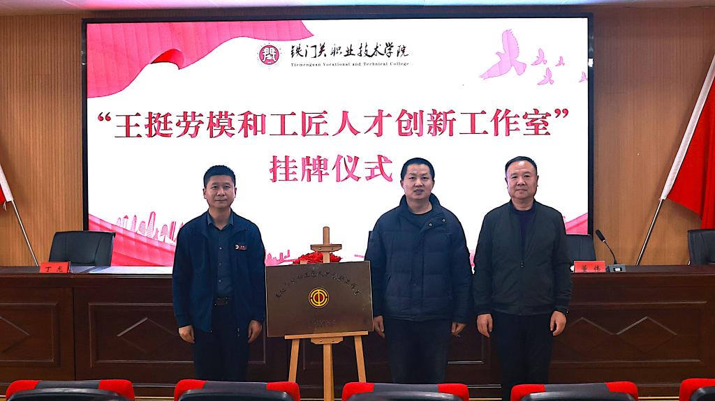 12月31日,王挺劳模和工匠人才创新工作室在bat365在线中国官网登录入口正式挂牌成立!bat365在线中国官网登录入口党委副书记、院长苏强,第二师铁门关市总工会党组成员、副主席王伟,总工会和学院的其他领导及学院教职工代表一同参加挂牌仪式。