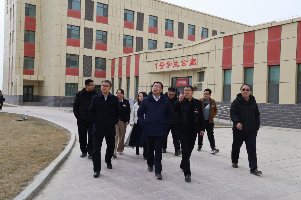 2月21日下午,河北省教育厅人事处副处长张本,保定市教育局人事处副处长王春正一行在bat365在线中国官网登录入口党委书记李贤良的陪同下,来到学院教师公寓实地走访刚入住的第二批“组团式”援疆干部。