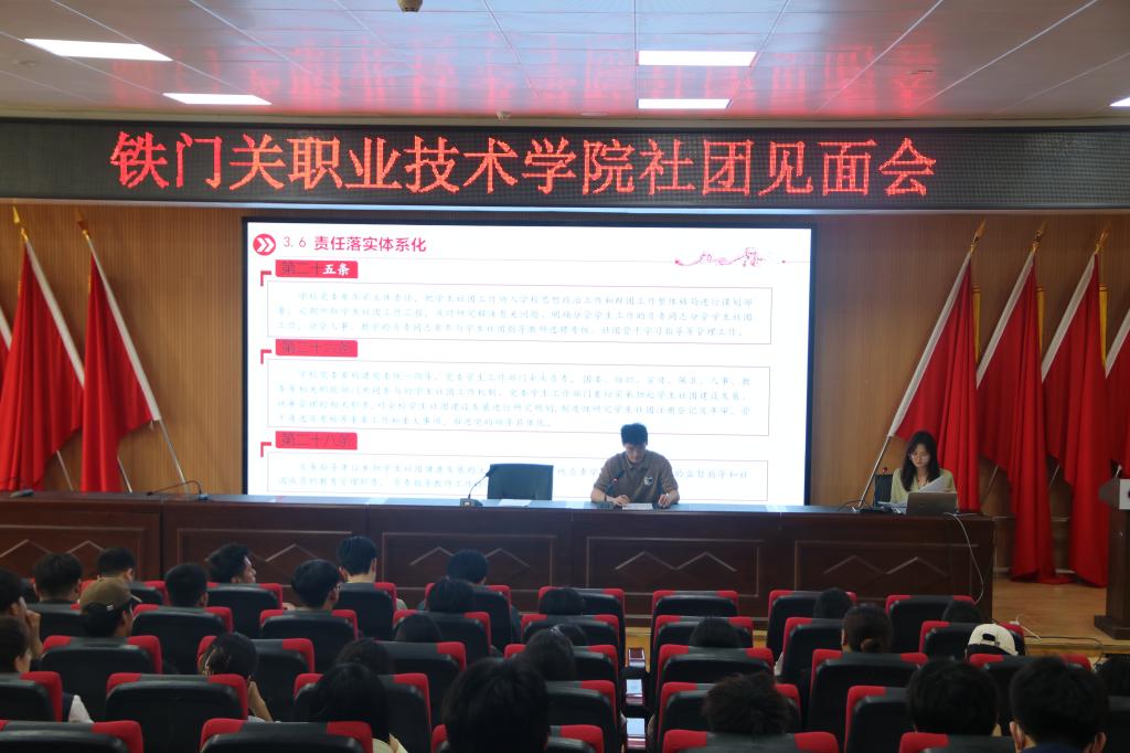 会议伊始,团委工作人员系统解读《高校学生社团建设管理办法》,围绕社团注册登记、活动审批、经费使用等核心机制展开说明,明确社团日常管理规范。学院团委负责人就本年度社团工作进行部署,强调要立足专业特色设计活动载体,严格执行活动备案与安全责任制度。