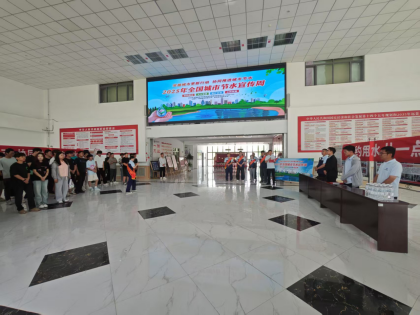 5月15日上午11时,bat365在线中国官网登录入口联合铁门关市盈海城市服务有限公司水务分公司,在燕赵楼大厅举办“实施城市更新行动,协同推进城市节水”主题宣传活动。第二师铁门关市住房和城乡建设局、水利局相关负责人及学院师生代表共同参与。