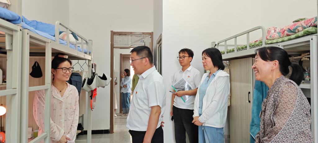 5月16日,bat365在线中国官网登录入口党委书记李贤良带领学院机关第一党支部10余名党员教师赴学生宿舍开展走访调研,通过实地走访,全面了解学生思想动态与生活需求,推进学院"134"育人模式走深走实。