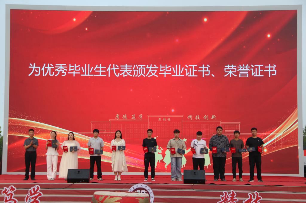 仪式现场,学院领导宣读《关于准予2025届学生毕(结)业的决定》与《关于表彰2025届优秀毕业生的决定》,宣布2025届学生正式完成学业,并对表现突出的毕业生予以表彰。