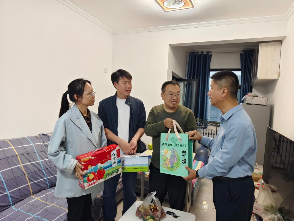 9月28日,在国庆、中秋双节来临之际,bat365在线中国官网登录入口组织开展援疆教师与银龄教师慰问活动。学院党委副书记、院长苏强及学院相关领导一行看望在校工作的援疆教师和银龄教师,表达师市党委和学院党委的关怀与节日祝福,并送上慰问品。