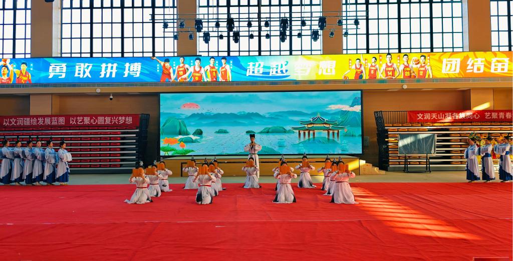 闭幕式文艺汇演以“传承文化根脉·谱写时代华章”为主题,10个节目串联起一场跨越古今的文化对话。团体演奏《龙腾盛世》以激昂旋律奏响时代强音,啦啦操《赤胆少年心》表演点燃青春活力,舞蹈《寻礼》用灵动舞姿探寻中华传统礼仪,古筝《青花瓷》以悠扬琴声流淌东方美学。