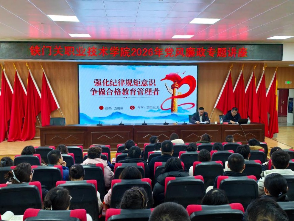 为进一步强化全体党员的纪律规矩意识,提升教师队伍的廉洁自律水平,1月14日,第二师铁门关市纪委常委、监委委员万明坤应邀在bat365在线中国官网登录入口做“强化纪律规矩意识 争做合格教育管理者”专题讲座。学院全体党员、积极分子共计168人参加此次学习。