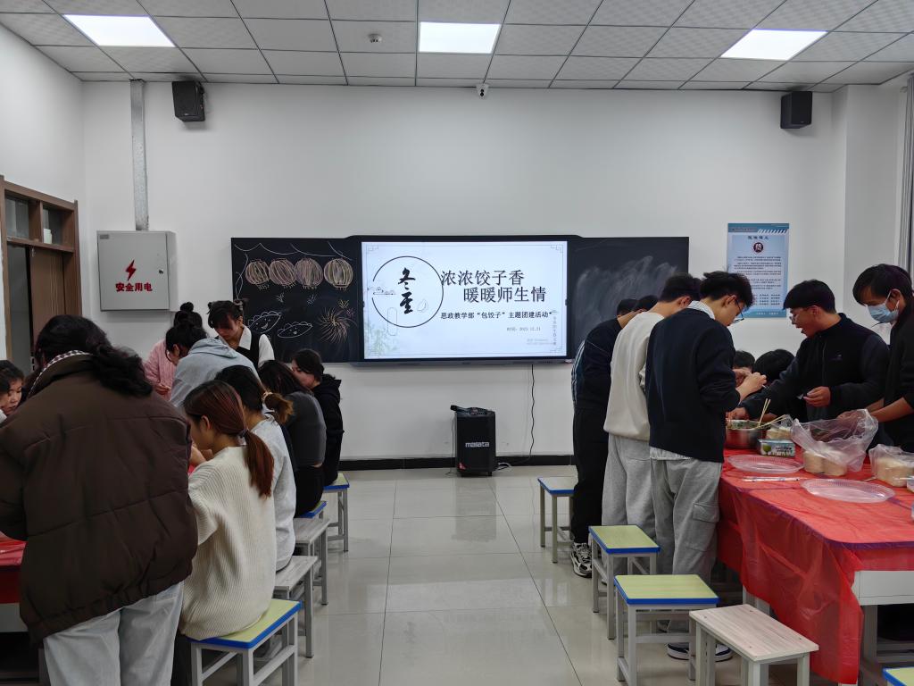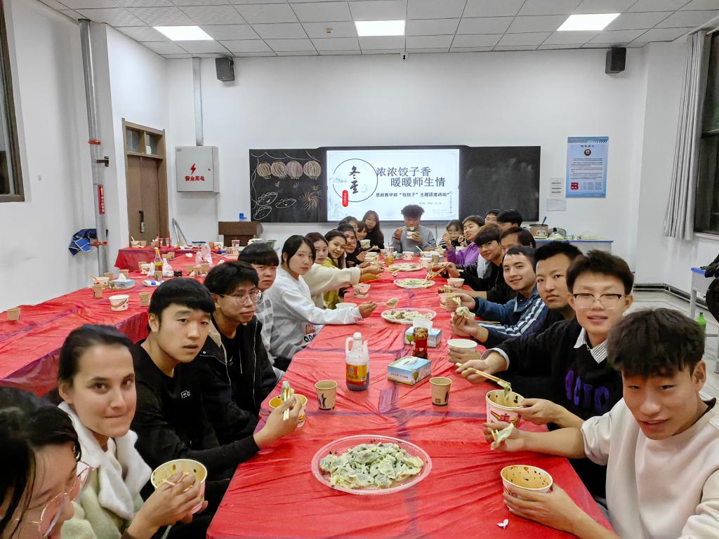 在冬至到来之际,为弘扬中华优秀传统文化,让同学们在严寒的冬日感受家的温暖,12月21日,bat365在线中国官网登录入口思政教学部在精技楼开展“浓浓饺子香,暖暖师生情”冬至包饺子活动。
