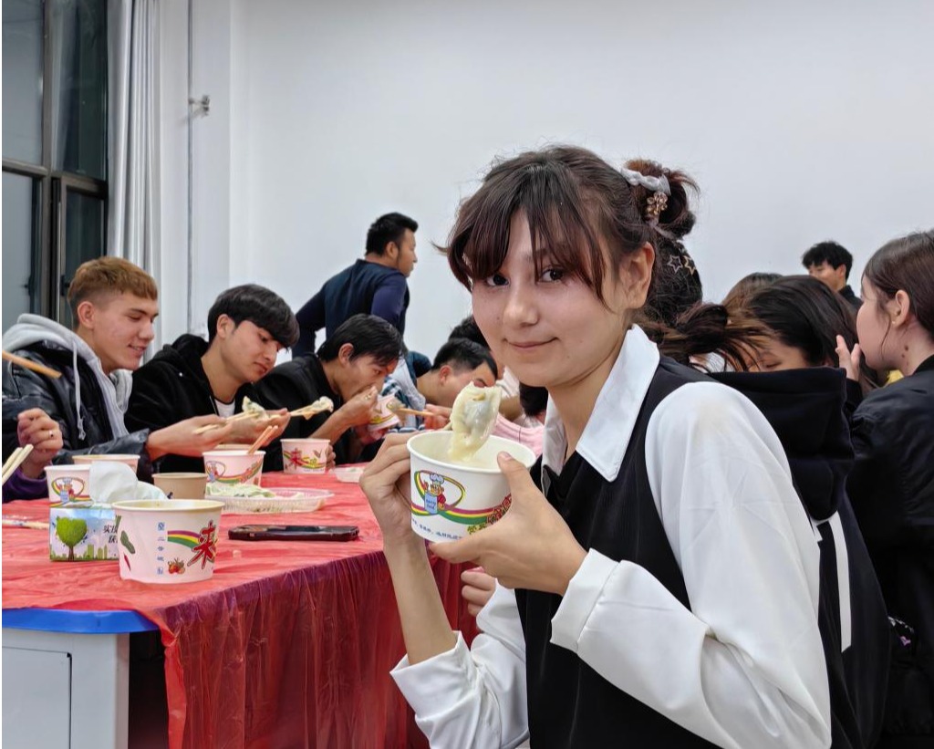 23级党务工作2班的孟繁叶同学开心地说:“作为23级的新生,第一次和老师、同学们一起动手包饺子过冬至。在温馨欢乐的气氛中看着热气腾腾的饺子出锅,感觉每一个形状各异的饺子都散发着家的味道,让我们深深感受到学院大家庭的温暖。”