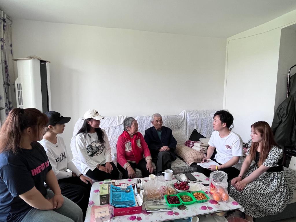 此次活动,党支部还组织了党务工作和社会工作专业的学生和党员教师深入社区送志愿服务上门。在迎宾社区党支部负责人的安排下,师生共分为5组,去老党员家中打扫卫生、陪老人聊天、教他们如何使用电子产品并一同进行政治理论学习。