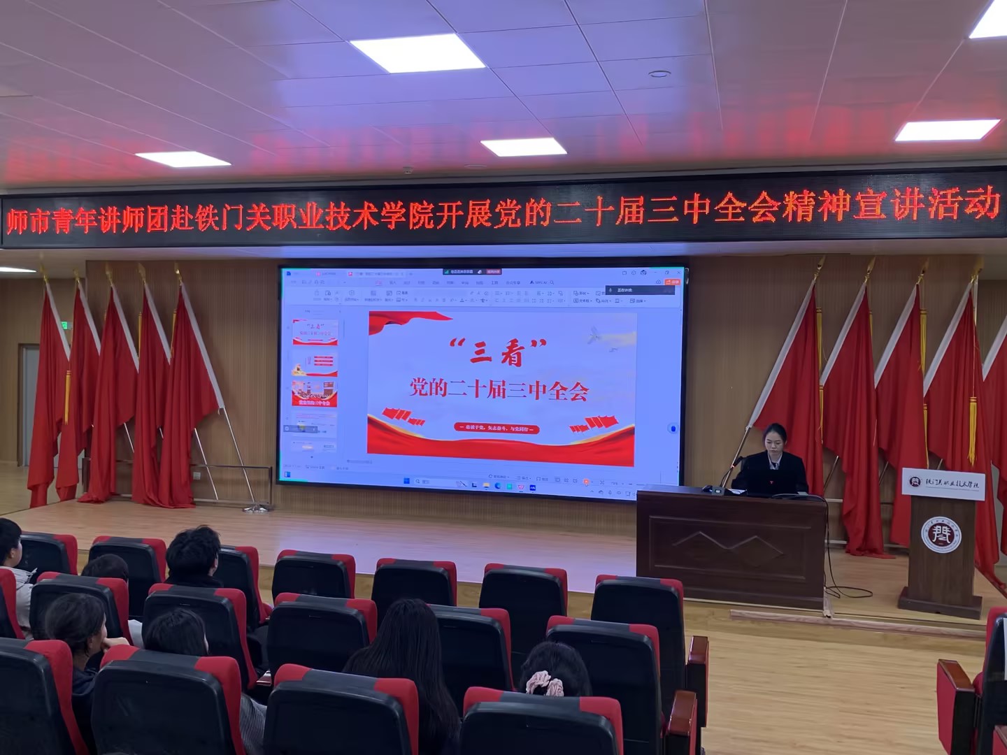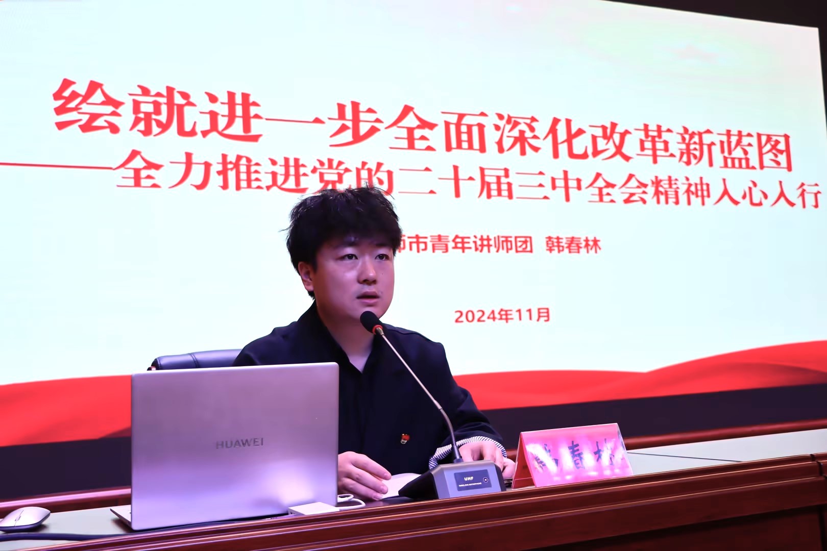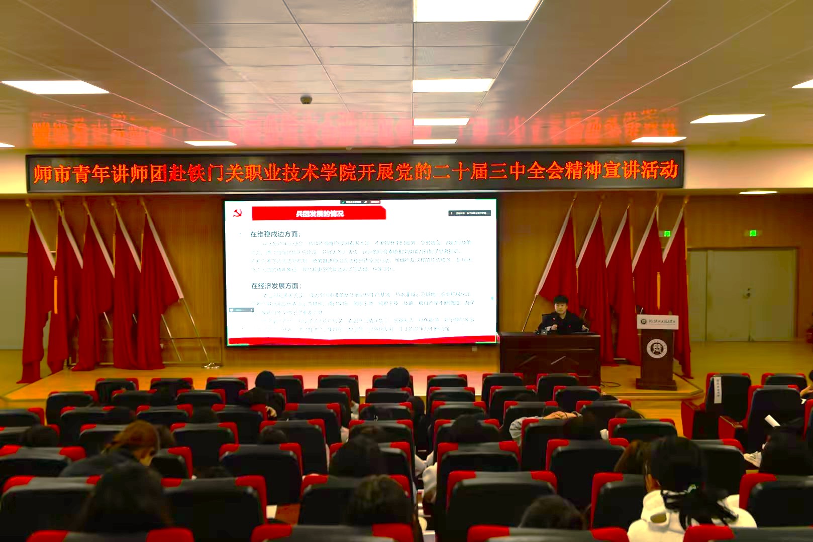 为全面学习贯彻党的二十届三中全会精神,11月13日下午,新疆生产建设兵团第二师铁门关市“青年讲师团”赴bat365在线中国官网登录入口开展党的二十届三中全会精神宣讲活动,旨在通过学习宣传、学思践悟、真抓实干,助推全会精神走深走实。