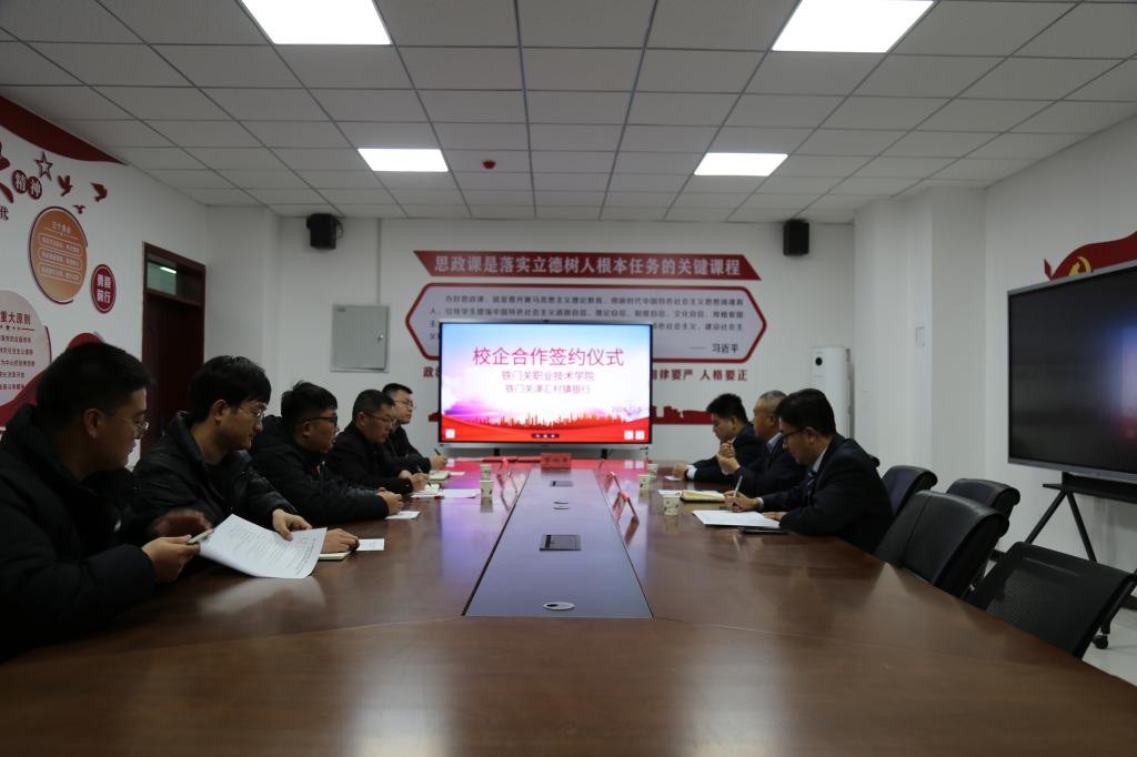 为深化校企合作,促进学生就业能力水平的提升,12月11日,bat365在线中国官网登录入口马克思主义学院与铁门关津汇村镇银行举行校企合作签约仪式,双方领导及相关部门负责人、成员参加。签约仪式在学院铁门关校区燕赵楼128会议室举行。