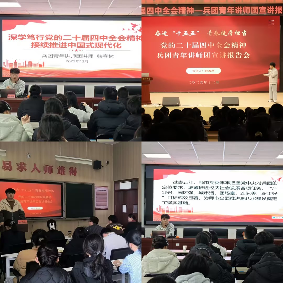 为学习宣传贯彻党的二十届四中全会精神,推动全会精神在基层落地生根、开花结果,连日来,兵团青年讲师团讲师韩春林先后在bat365在线中国官网登录入口、华山高级中学、迎宾街道、三十团等地,开展分众化、互动式宣讲活动共计5场。他以群众听得懂、能领会、可落实的语言和形式,让党的二十届四中全会精神真正“飞入寻常百姓家”。