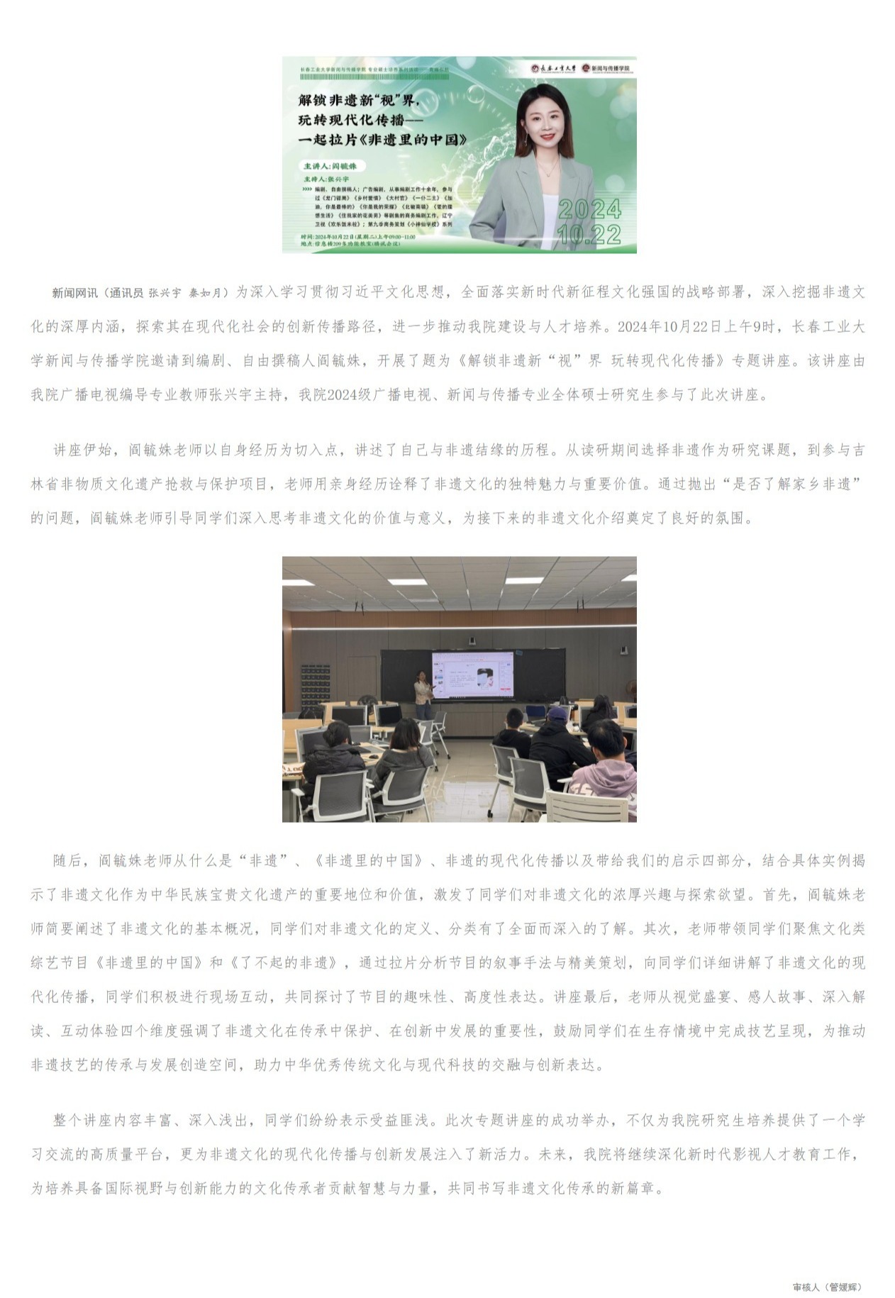 开云kaiyun官网专业硕士培养系列讲座——解锁非遗新“视”界 玩转现代化传播