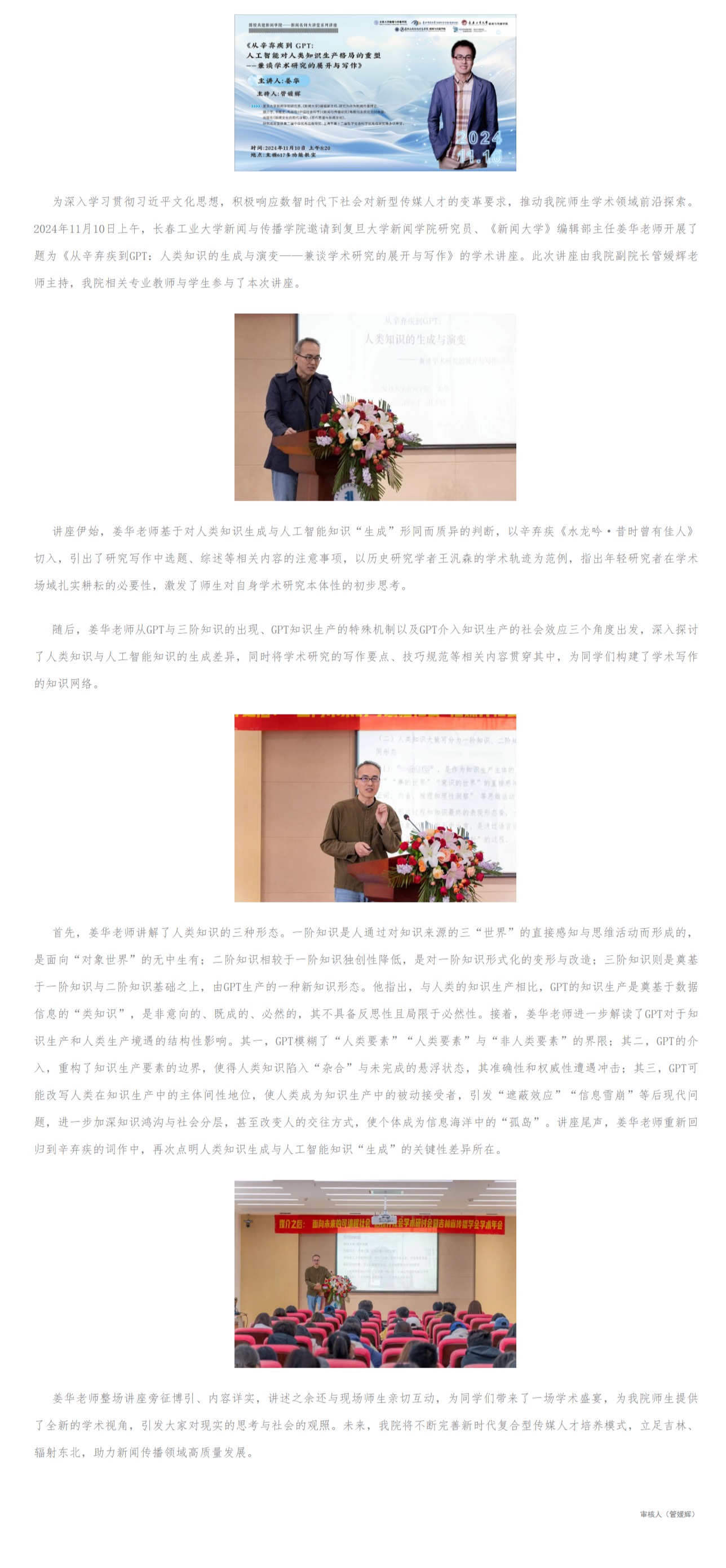 开云kaiyun官网 部校共建新闻学院——新闻名师大讲堂系列讲座《从辛弃疾到GPT:人类知识的生成与演变——兼谈学术研究的展开与写作》