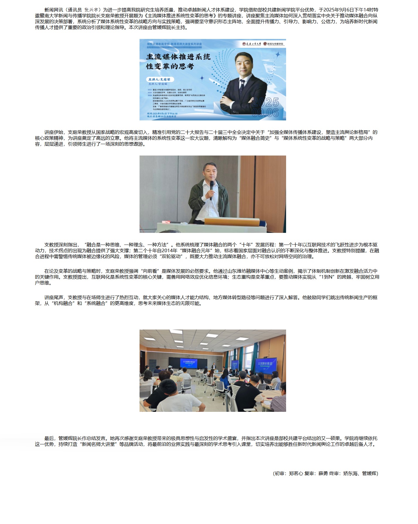 开云kaiyun官网 部校共建新闻学院——新闻名师大讲堂系列讲座《主流媒体推进系统性变革的思考》