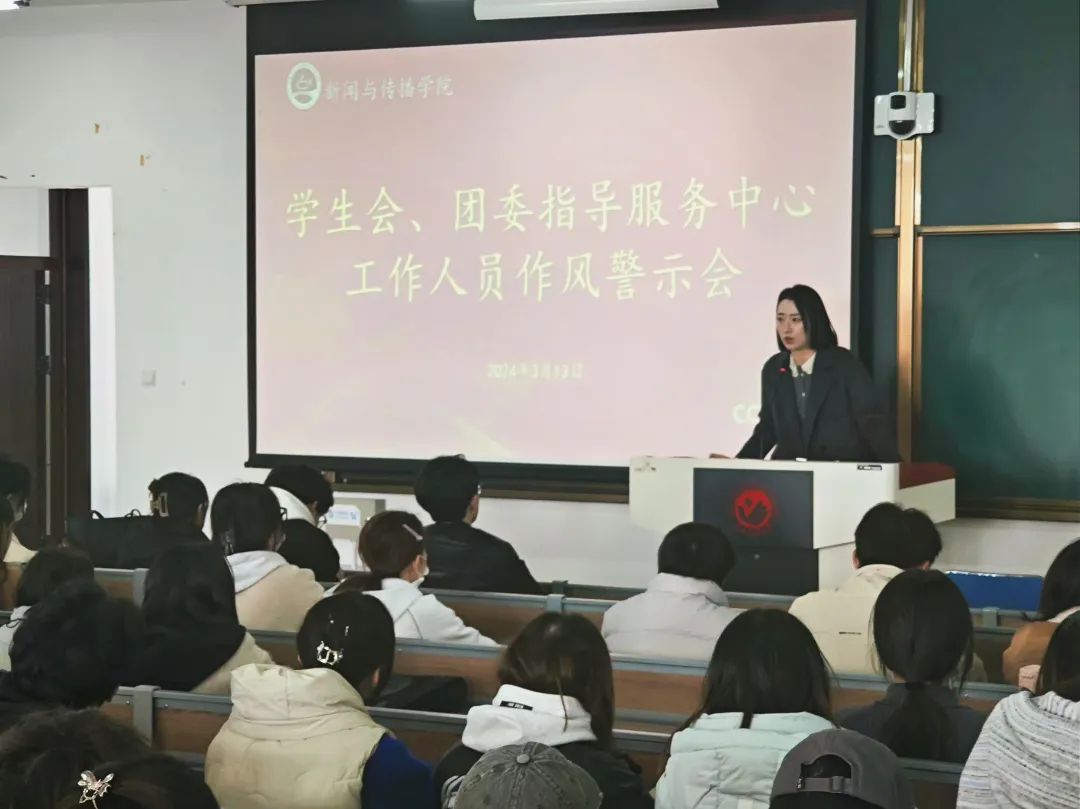 新闻网讯(通讯员 谢雨)为加强团委、学生会、研究生会成员的纪律性和规范性,增强学院学生骨干自律意识,建设一支强有力的学生队伍,2024年3月13日,开云kaiyun官网于信息楼301教室组织并召开学生会、团委指导服务中心、研究生会工作人员作风警示会。团学组织全体学生干部参加了此次会议,本次会议由学院团委书记崔悦主持召开。