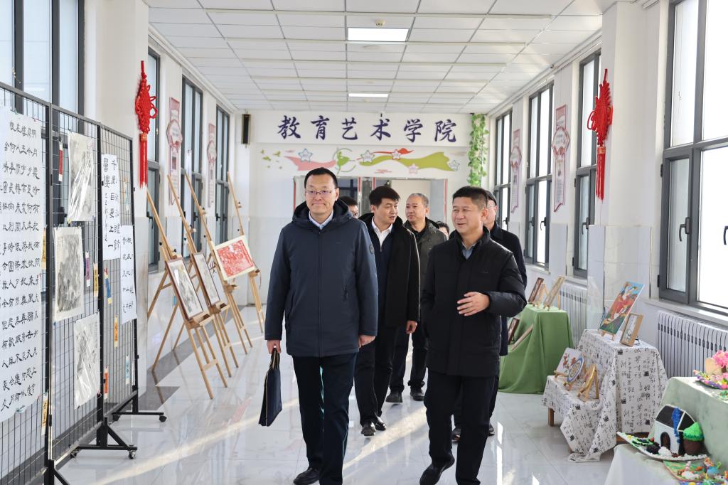 来访团在学院领导的陪同下实地参观了汽车与智能交通学院实训车间、化学与材料工程学院实训厂房、教育艺术学院文化长廊、财经商贸学院直播间及学院展厅,深入了解学院专业布局、实训设施建设及教学环境。在学院展厅,来访团听取了学院现有办学规模及未来发展规划的介绍,对学院取得的办学成效予以充分认可和高度评价。
