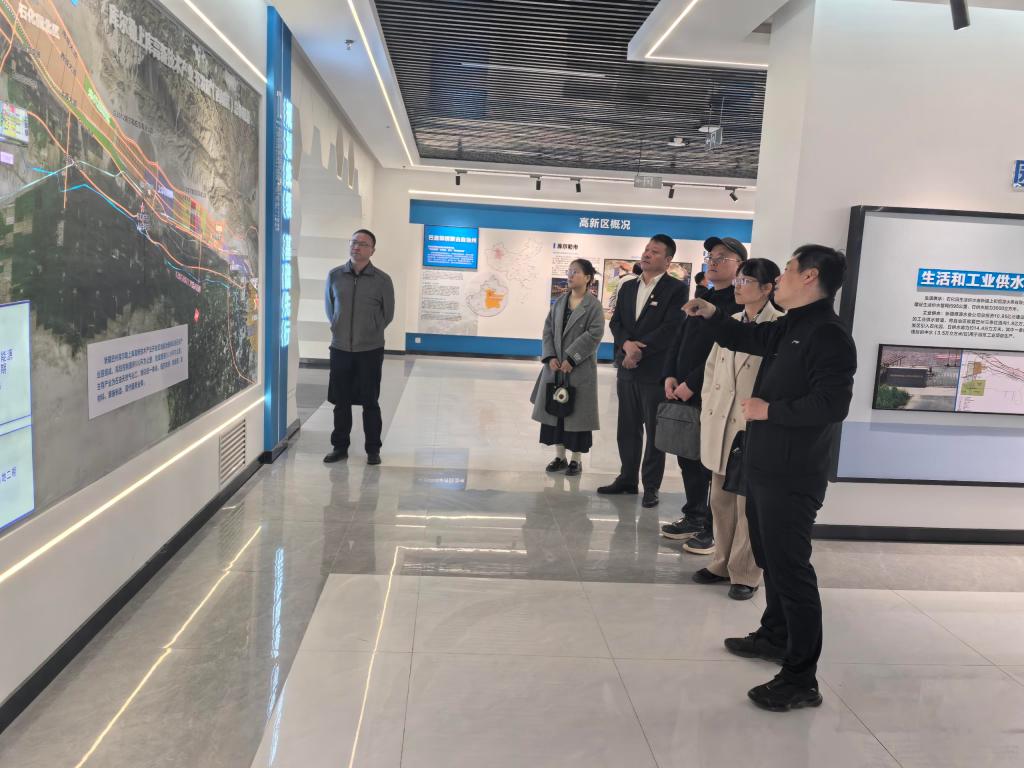 抵达产业园区后,一行人观看了产业园区规划图,并与上库工业园独山子塔里木石化有限公司、中昆化工有限公司、中泰化工有限公司开展座谈会,深入了解企业的发展历程、业务范围、技术创新成果以及人才需求状况。