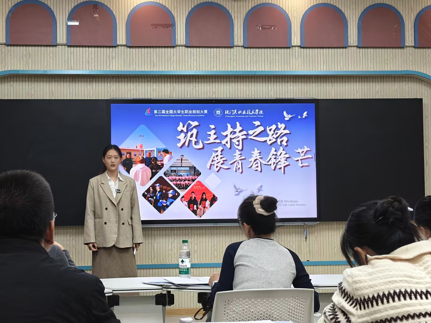 比赛现场,选手们围绕自我认知、职业环境分析、规划实施路径、目标达成策略等关键内容,通过PPT演示、现场答辩等形式,全面展现个人职业规划蓝图。成长赛道的选手聚焦学业提升与综合能力培养,分享阶段性成长目标与实践方案;就业赛道的选手紧扣行业发展趋势与岗位需求,精准定位职业方向,阐述求职竞争力提升计划,充分彰显了新时代大学生清晰的职业认知与积极向上的奋斗姿态。