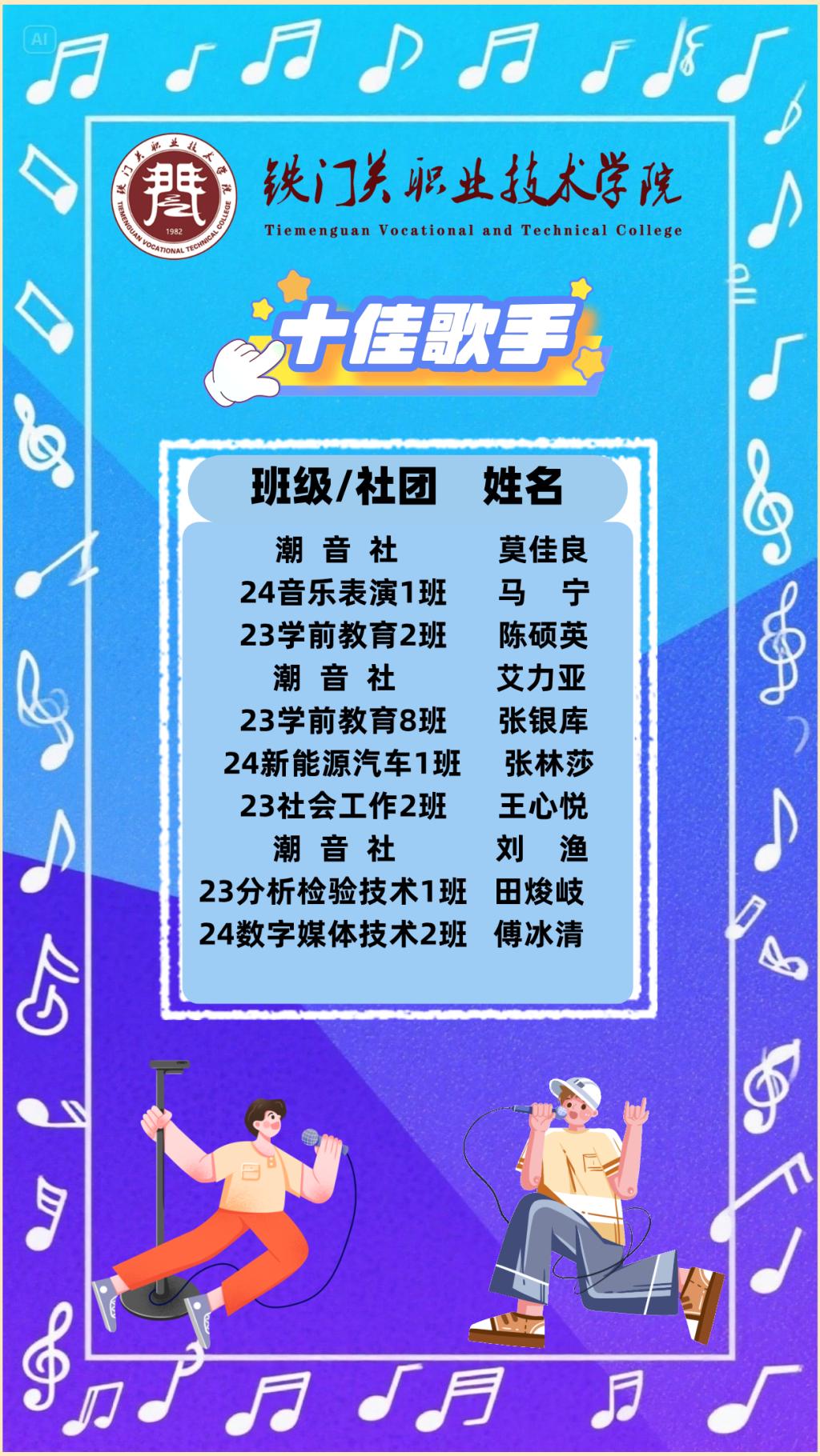 评委团从音准、节奏、情感表达、舞台表现等维度进行专业评分,结合线上投票数据综合评定。最终24级数字媒体2班学生傅冰清以超高网络支持率获“最佳人气奖”,24级音乐表演1班学生马宁因舞台掌控力突出获“最佳台风奖”,另有十位选手凭借综合实力入选“十佳歌手”行列。