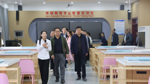一行人首先来到学院德艺楼、展厅和新媒体产业学院,实地参观了“石榴籽”文化长廊,舞蹈室、美术室、仿真实训基地等实训室及电商直播间。
