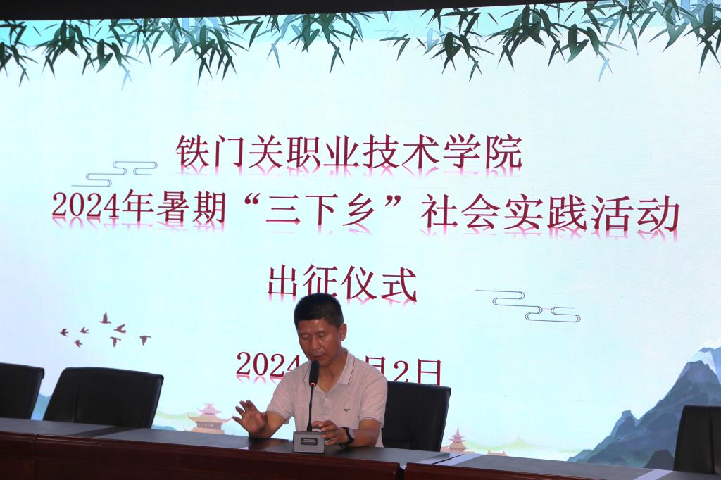 出征仪式现场气氛热烈,学院领导、指导教师以及即将投身实践活动的学生代表们齐聚一堂。苏强发表了热情洋溢的动员讲话,他强调了,大学生“三下乡”社会实践活动对推动广大学生接触基层、了解国情、磨炼意志、实践成才具有积极作用和深远意义,他鼓励同学们在实践中深入了解国情、社情、民情,积极发挥专业优势,为乡村发展注入新的活力。苏院长还详细介绍了本次“三下乡”活动的组织筹备情况和具体安排。