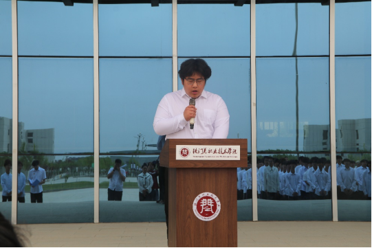 优秀团员代表信息工程系22网络技术2班张歌升进行发言,首先对新加入bat365在线中国官网登录入口团委的同学们表示热烈的欢迎和衷心的祝贺,随后呼吁大家:“要坚定信仰和理想信念;养成良好的品德和道德修养;培养扎实的知识和技能;要有用于担当和奉献的精神。”