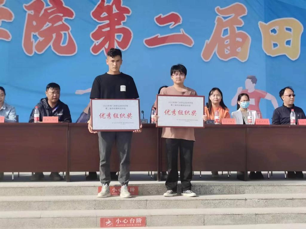 闭幕式上,裁判长宣布了本次运动会各项比赛成绩及获奖个人和集体名单。学院领导及各系部负责人为获奖选手颁奖。台上,欢欣鼓舞,台下,掌声雷动。