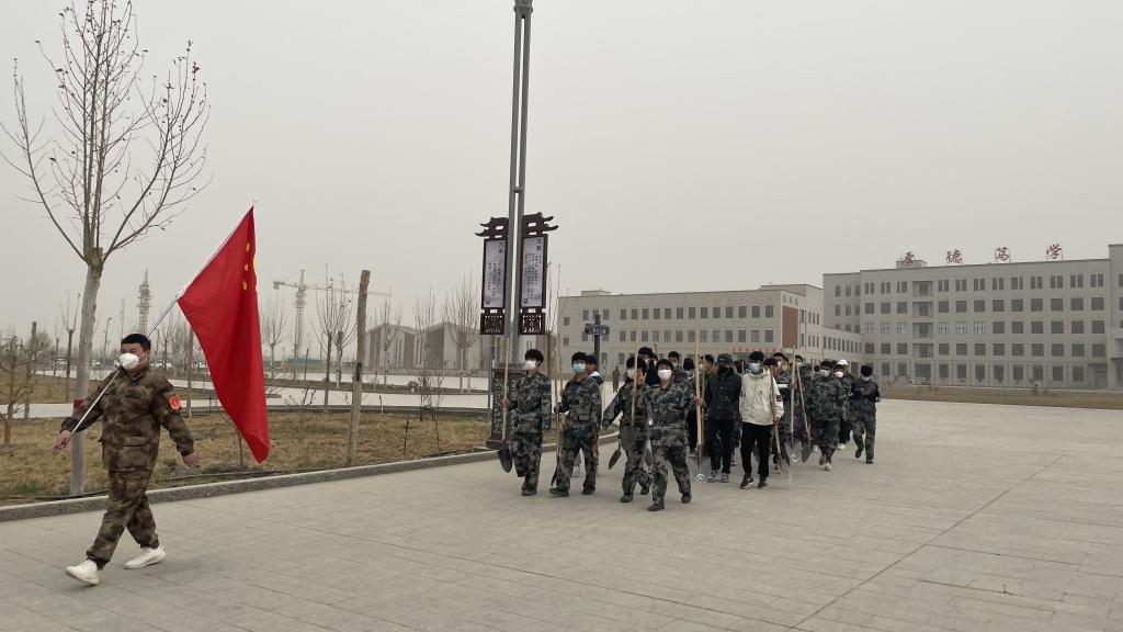 集合完毕,大家热情高涨,干劲十足,扛着铁锹浩浩荡荡向目的地进发!