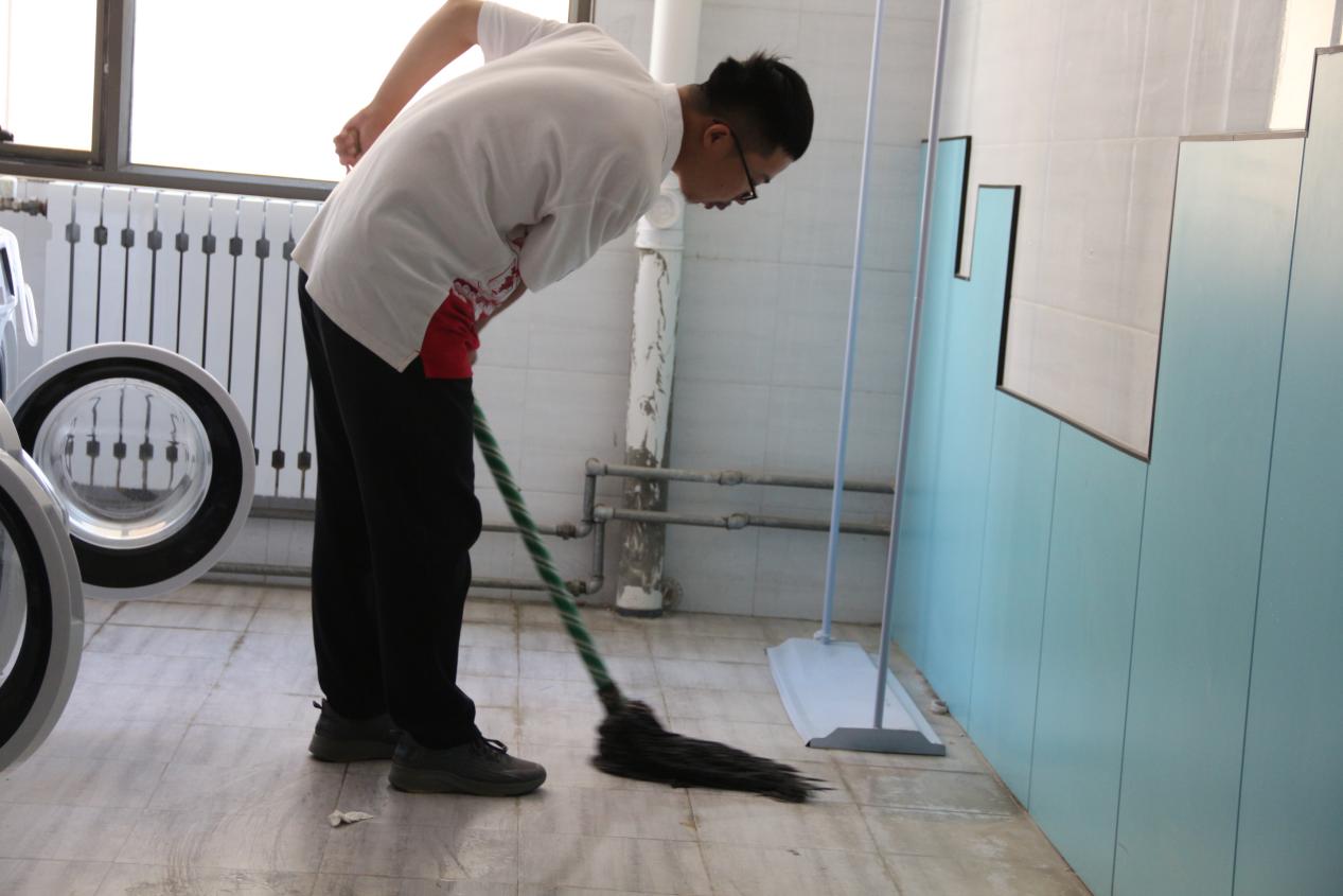 随后,青年志愿们回到学院,一同开展学生宿舍环境卫生整治活动。志愿者们手持扫把、拖把等清洁工具,分工协作、相互配合,对学生宿舍进行大扫除,经过一番努力,使住宿环境焕然一新。