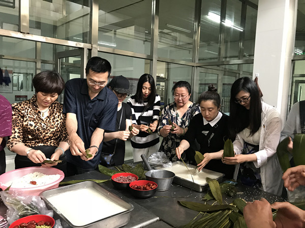 在组织全院教师开展包粽子活动的同时,各部门负责人也分批将包好的粽子送到有课不能参加包粽子活动教师的手中,让他们充分感受到来自学院的关怀。