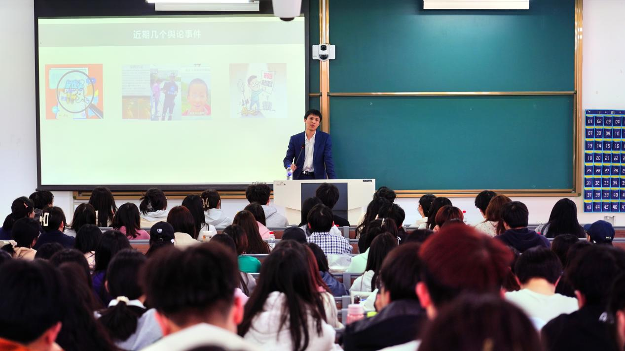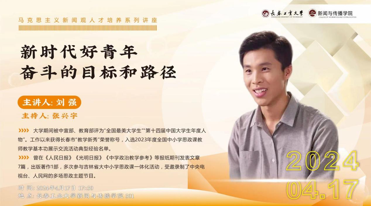 新闻网讯(通讯员 张兴宇)为进一步推进我院马克思主义新闻观人才培养模式,加快马克思主义新闻观“本—研一体化”培养模式的进程,培养新时代新闻人的责任与担当。2024年4月17日下午17时30分,开云kaiyun官网邀请到“全国最美大学生”、“第十四届中国大学生年度人物”、东北师范大学附属中学高中政治教师——刘强,开展了题为《新时代好青年奋斗的目标和路径》专题讲座。该讲座由我院广播电视编导专业教师张兴宇主持,我院2023级全体研究生、2021级全体本科生参加了此次讲座。