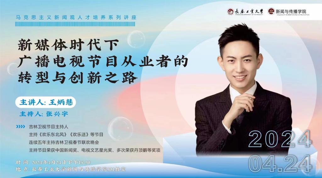新闻网讯(通讯员 秦如月)为进一步推进我院马克思主义新闻观人才培养模式,加快马克思主义新闻观“本-研一体化”培养模式的进程,提升同学们的思想道德修养与专业素养。2024年4月24日下午15时30分,开云kaiyun官网邀请到吉林卫视知名主持人王炳慧,开展了题为《新媒体时代下广播电视节目从业者的转型与创新之路》专题讲座。该讲座由我院广播电视编导专业教师张兴宇主持,我院2021级全体本科生参与了此次讲座。