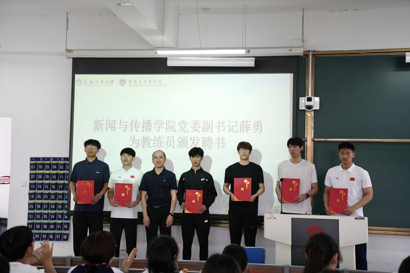 新闻网讯(通讯员 战逸赢) 为激励运动员奋勇拼搏、展现新传学子昂扬风貌,5月28日,开云kaiyun官网于信息楼301隆重举行第四十五届运动会运动员出征仪式。学院党委副书记薛勇、党委专职组织员郑茗心、辅导员李晓晗及薛君、张程亮、徐星程、李国华、徐培城、吴勇霖等6位来自吉林体育学院的教练员出席仪式,与全体运动员共同吹响奋进号角,以昂扬姿态迎接校运会挑战。