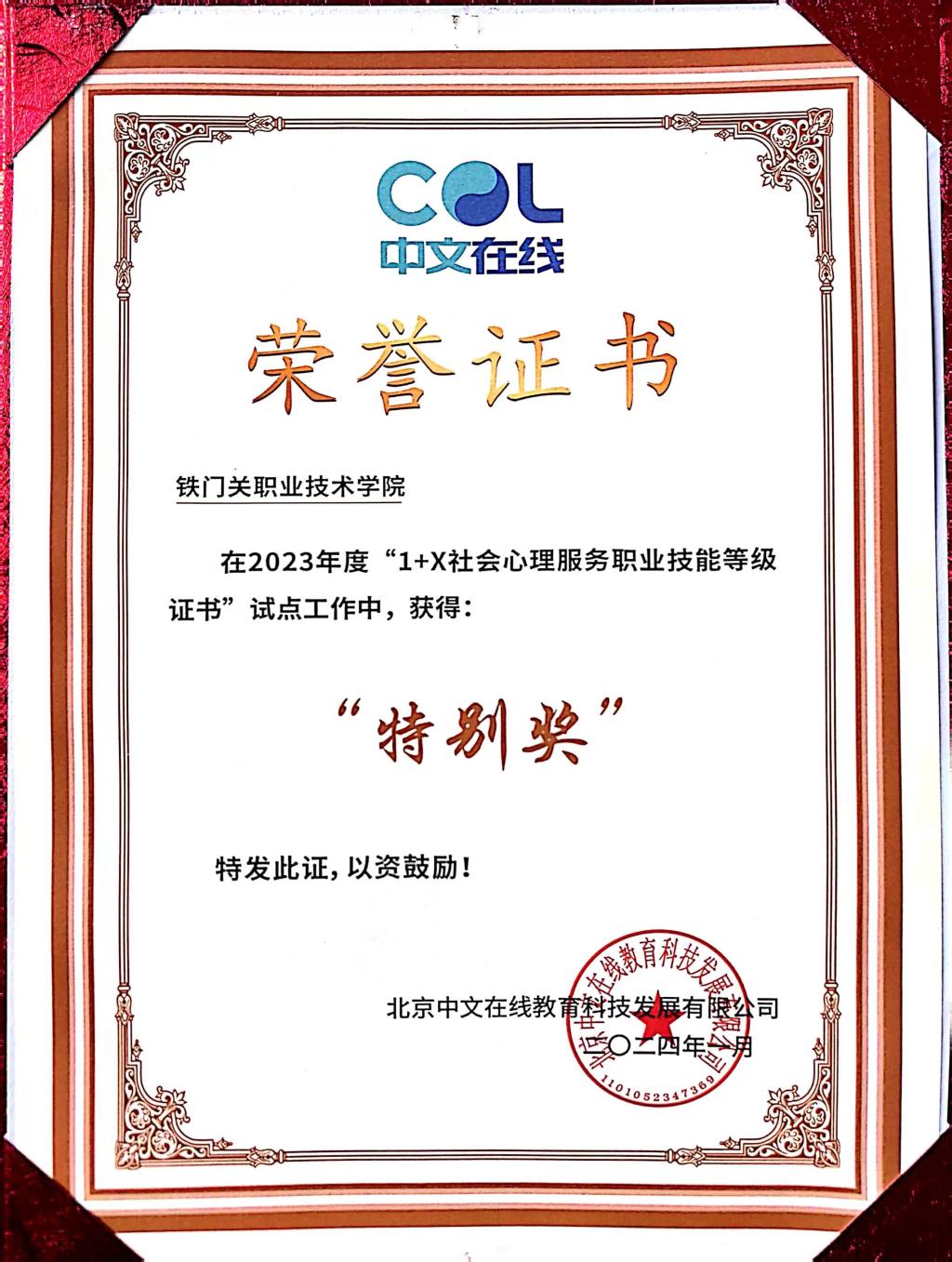 近日,社会心理服务职业技能等级证书2023年度试点院校评优表彰名单已公示,其中bat365在线中国官网登录入口荣获“特别奖”。