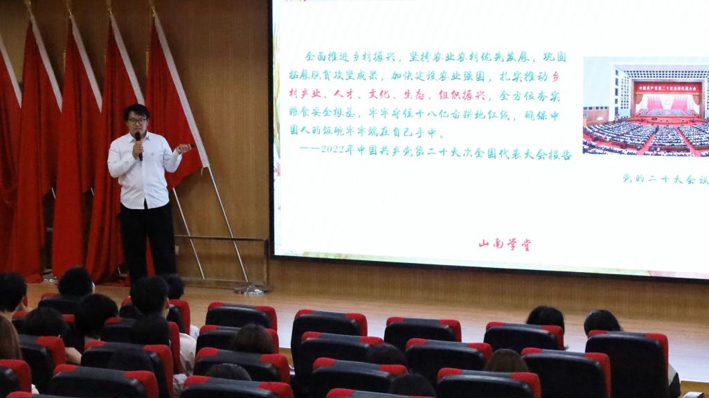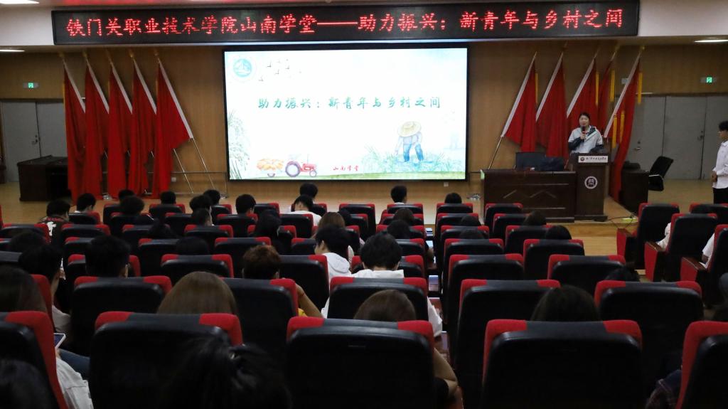 2024年是中国共产主义青年团成立102周年。为发扬“党有号召、团有行动”的优良传统,积极引导全体共青团员坚定听党话、感党恩、跟党走的政治信念。4月29日,bat365在线中国官网登录入口思政教学部“山南学堂”社团在燕赵楼121阶梯教室举办公益讲座《助力振兴:新青年与乡村之间》,学院200余名青年大学生齐聚一堂,共享文化盛宴。
