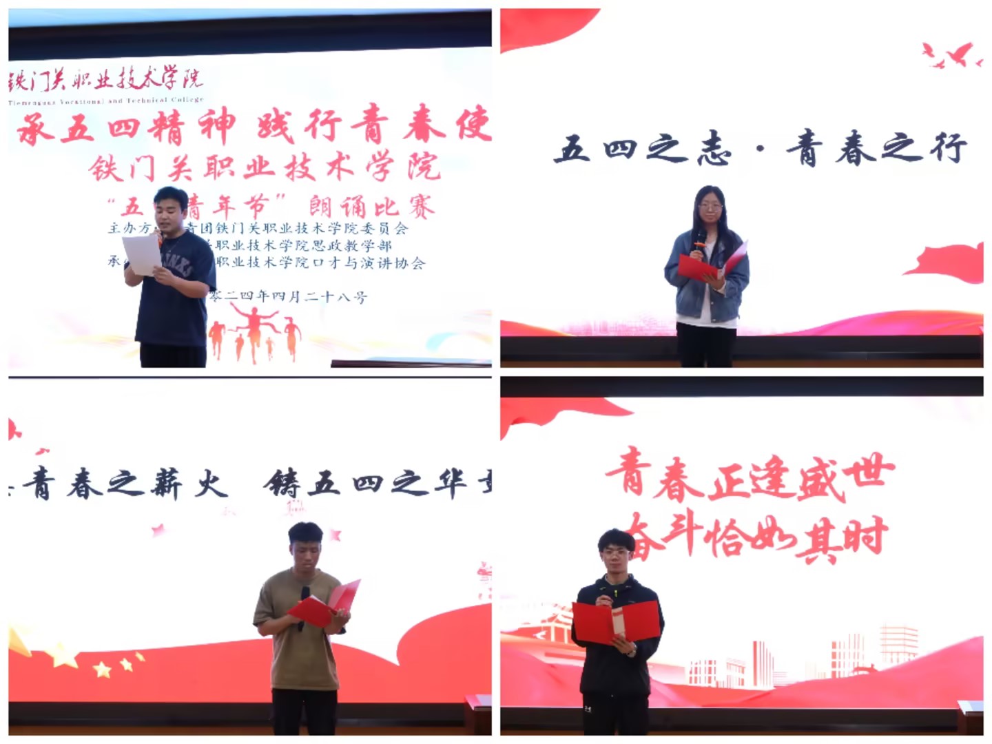 为纪念“五四”运动105周年,厚植大学生爱国主义情怀,展现新时代青年的蓬勃朝气和多彩的校园文化生活,4月28日,bat365在线中国官网登录入口“传承五四精神 践行青春使命”主题朗诵比赛决赛在燕赵楼121阶梯教室举办,此次比赛由学院团委、思政教学部主办,基础教学部和口才与演讲协会(社团)承办。
