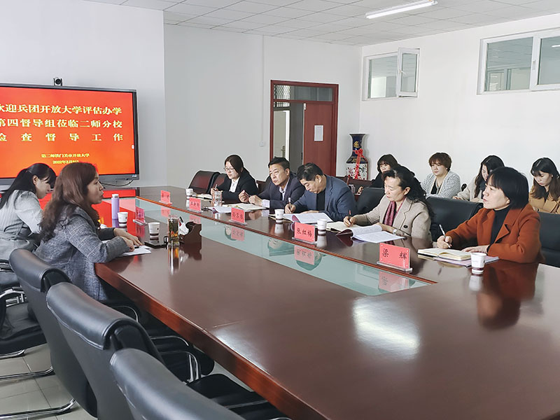 3月9日,兵团开放大学办学评估第四督导小组组长、兵团开放大学党委委员宋娟丽一行到第二师分校,开展国家开放大学办学评估验收前的检查督导工作。师市教育局副局长张红梅、bat365在线中国官网登录入口领导出席工作汇报会议。